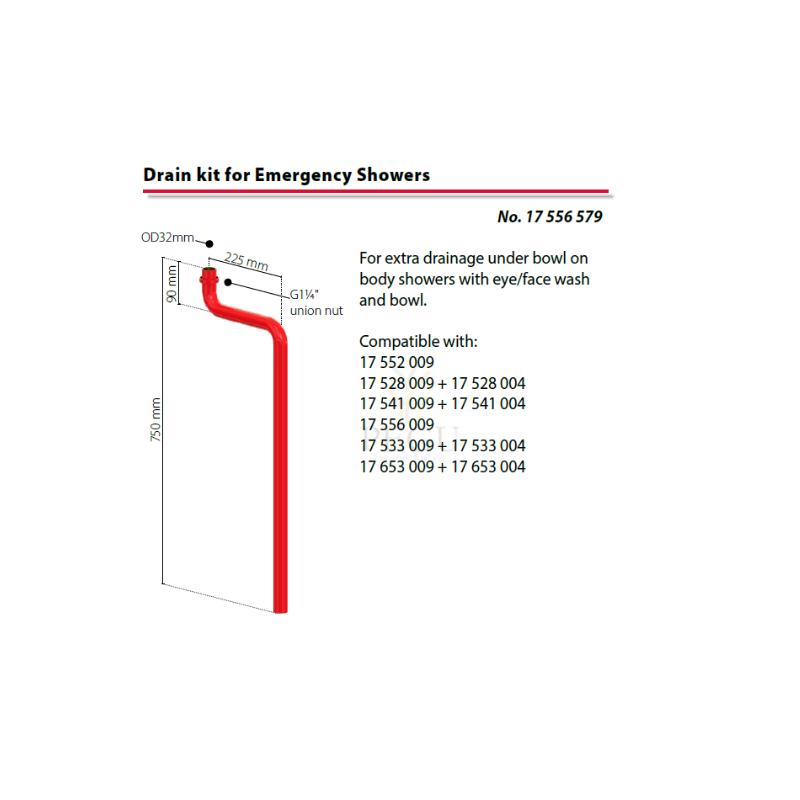 Utrustad med självdränerande duschsil och ögondusch för minskad bakterietillväxt. Den röda POLYCOAT-lackerade rörstommen gör inte bra att första hjälpenutrustningen syns väldigt bra, den står även emot de flesta kemikalier, UV- blekning och värme.