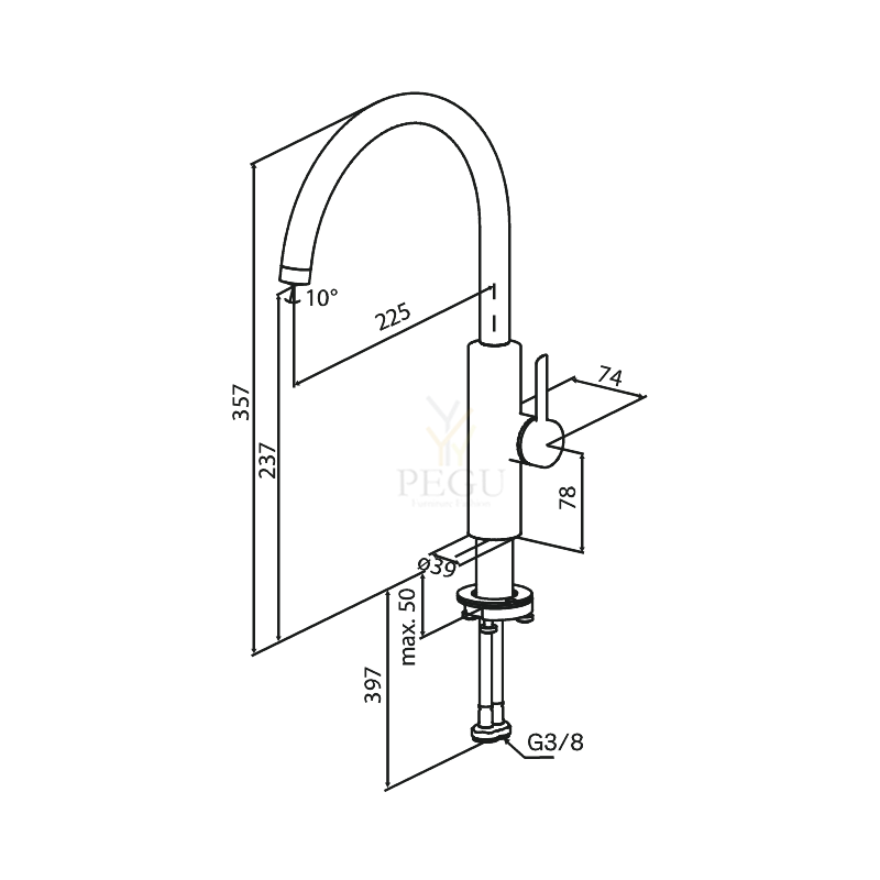 Pöördeulatus 110°: Optimaalne liikumisvabadus, mis sobib ideaalselt enamiku köögivalamutega.