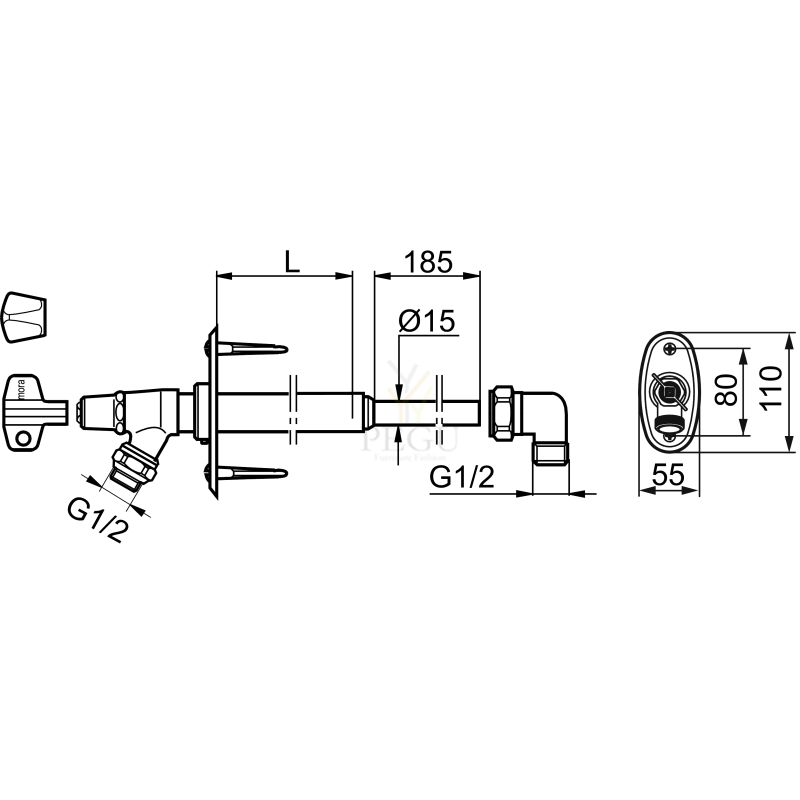 MORA 700986 GARDEN 2 frost-free aiakraan 400mm, võtmega/ventiiliga