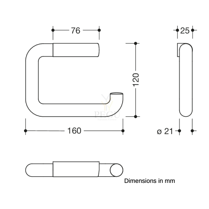 Kirjeldus: Täisnurkne U-kujuline hoidja, mis on valmistatud vastupidavast polüamiidist vastavalt HEWI värvikaardile. Disain on loodud taluma suurt koormust, pakkudes samal ajal vargusvastast kaitset tänu peidetud kinnitussüsteemile. Komplektis on korrosioonikindel kinnitusmaterjal.