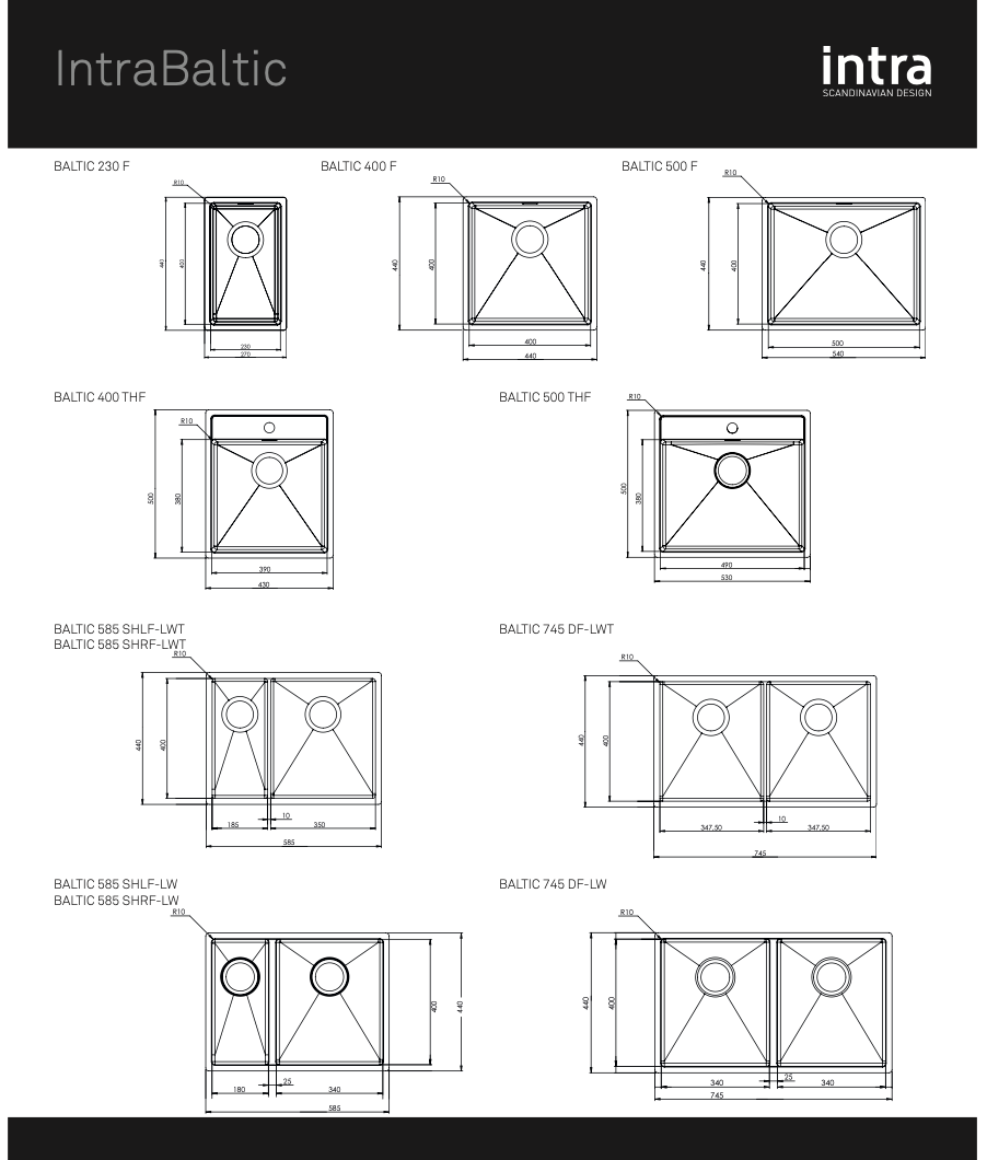 Baltic ruudukujuline köögivalamu, 1½ kaussi õhukese ja madala vaheseinaga, paigaldamiseks nii tasa kui ka allavajutatult. Madal vahesein võimaldab kasutada kas kahte eraldi kaussi või kogu valamut näiteks suurte ahjuplaatide pesemisel. Kaasas korv-äravool, ülevool ja veekraan. Klambreid pole kaasas. Eraldi artiklinumber klambritega tasa paigaldamiseks: Baltic585SHLF-LWT / Baltic585SHRF-LWT