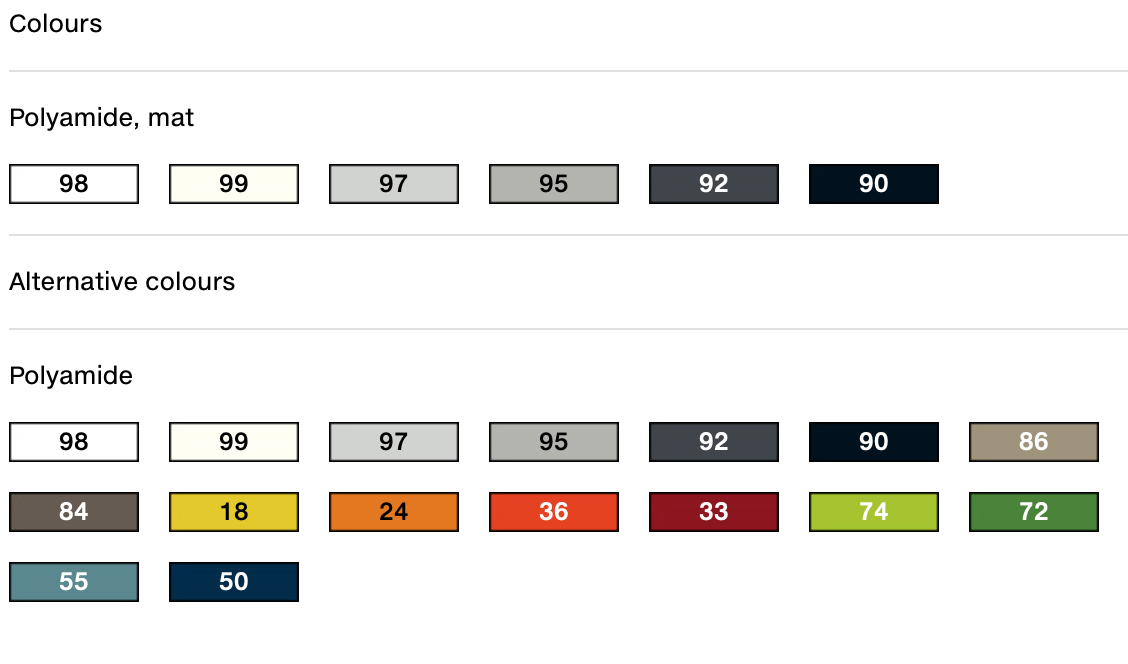 • made of high-quality matt polyamide in HEWI colours 99 (pure white), 98 (signal white), 97 (light grey), 95 (stone grey), 92 (anthracite grey) and 90 (jet black)