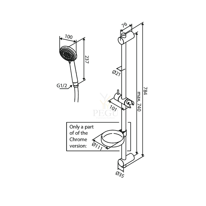 Damixa душевой комплект Flex max 740mm CORE хром 593233000