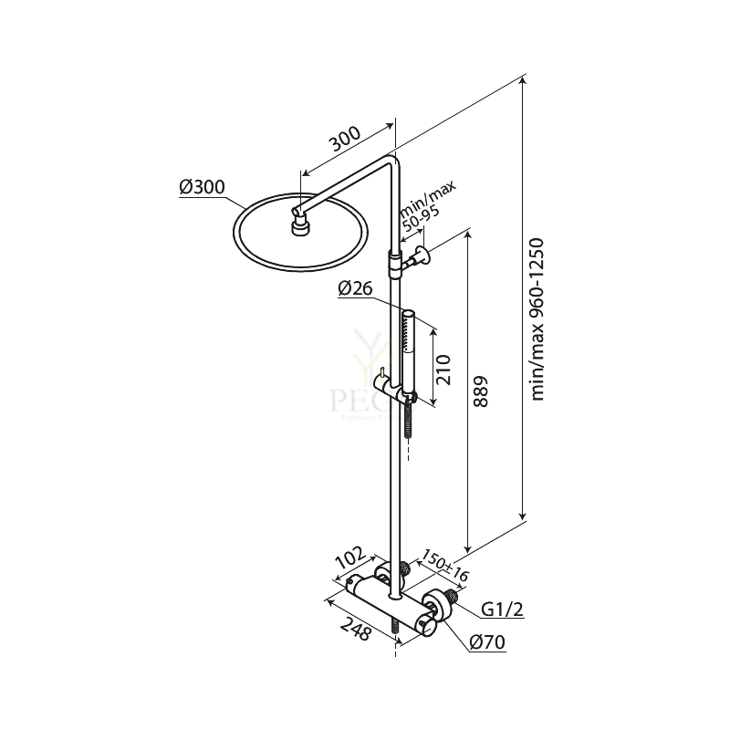 Стандарт подключения: Межосевое расстояние 150 мм.