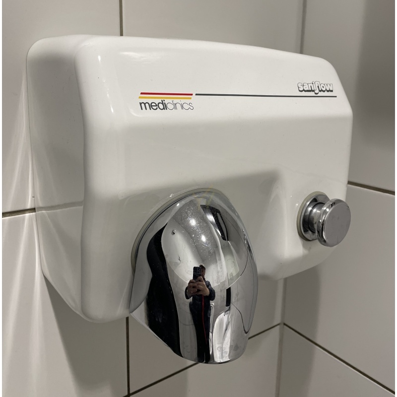 Saniflow® сушилка для рук с кнопочным управлением — одна из самых популярных моделей в мире для общественных мест с интенсивным трафиком. Корпус из прочного чугуна с белым эмалевым покрытием обеспечивает долгий срок службы и устойчивость к повреждениям.