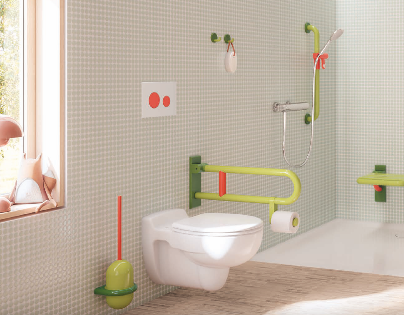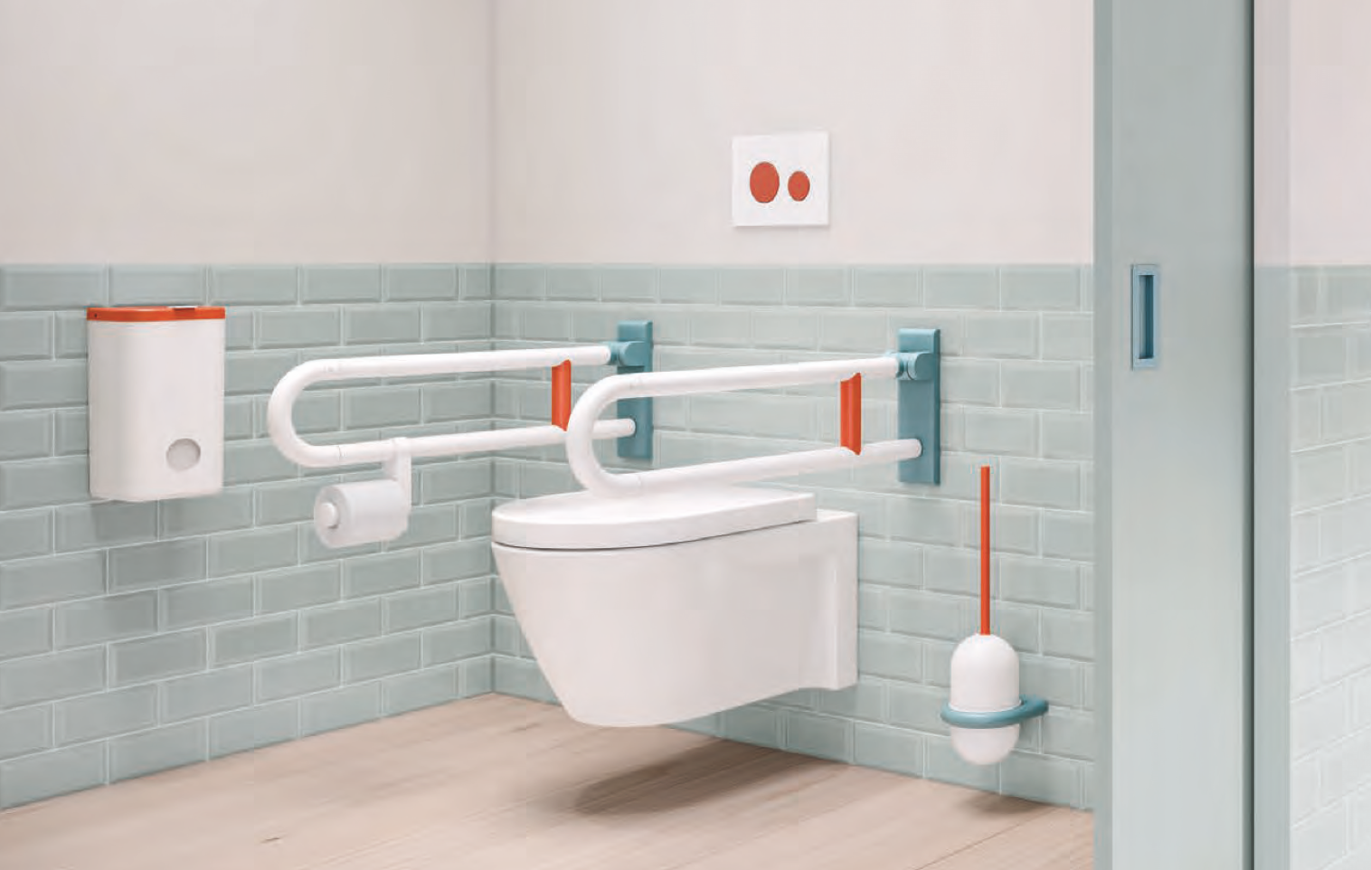 - wall bracket and bracket made of high-quality plastic in HEWI colours 98 (signal white), 92 (anthracite grey) and 90 (jet black), matching the seat surface