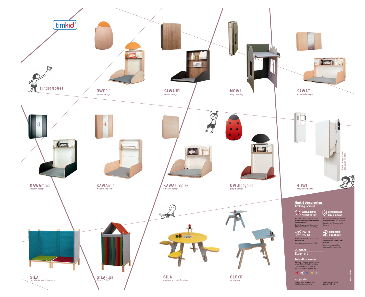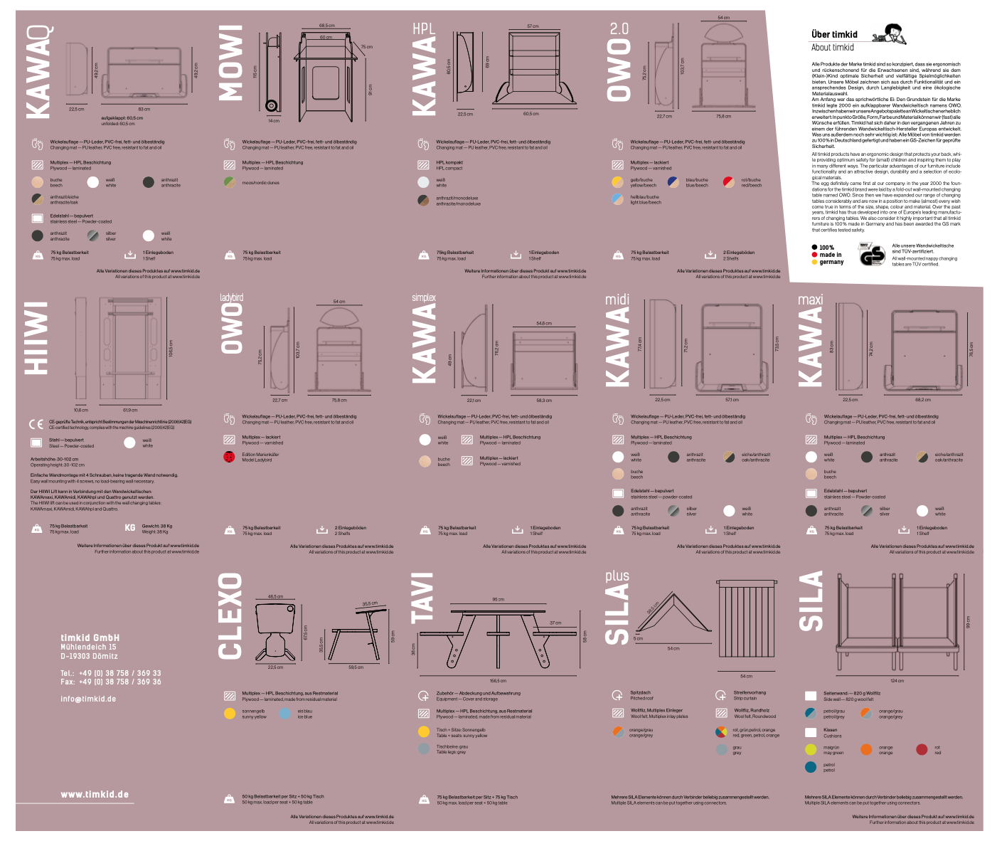 TimKid – ведущий производитель пеленальных столов в Европе, предлагающий TÜV-протестированные и сертифицированные GS решения, сочетающие долговечность, эстетичный дизайн и эргономичность. Все продукты TimKid на 100% произведены в Германии и созданы с учетом удобства и безопасности как для детей, так и для взрослых.
