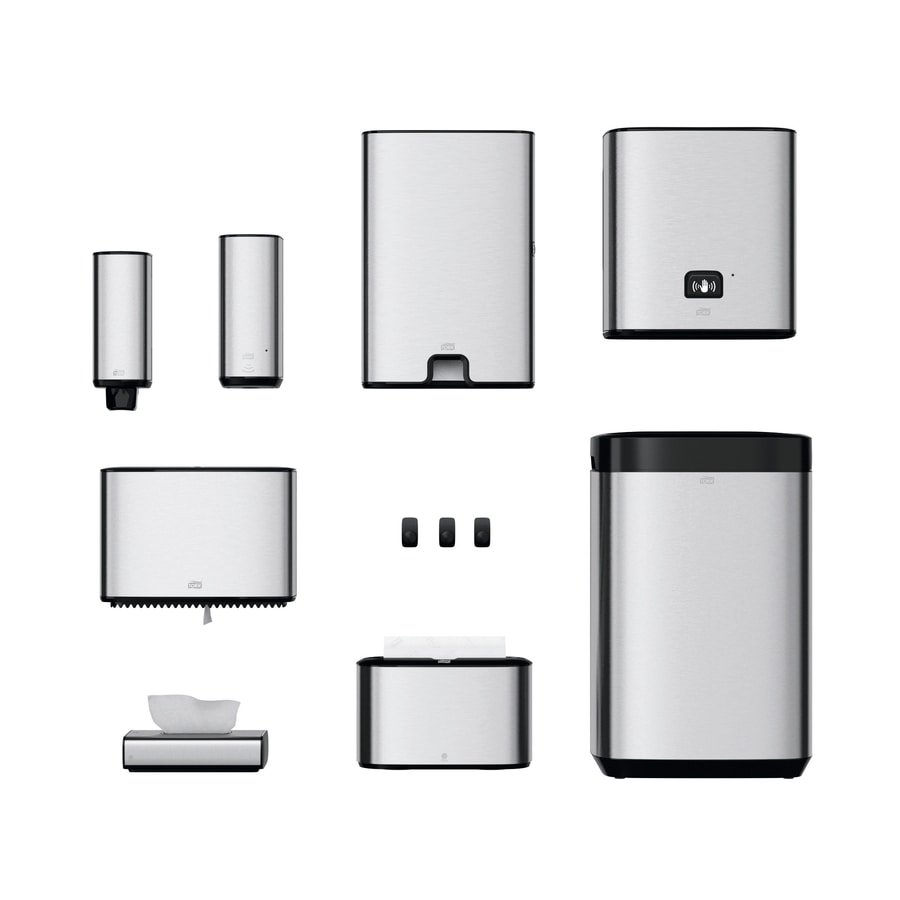 Серия Tork Image Design включает диспенсеры, предназначенные для высококачественных и премиальных санитарных зон. Дизайн изделий современный, с плавными закругленными краями для элегантного вида. Диспенсеры изготовлены из нержавеющей стали, и их поверхность защищена от следов пальцев, что облегчает чистку. В ассортименте представлены различные модели: диспенсеры для бумажных полотенец, мыло с датчиками и без них, диспенсеры для туалетной бумаги и косметических салфеток, а также мусорные корзины.