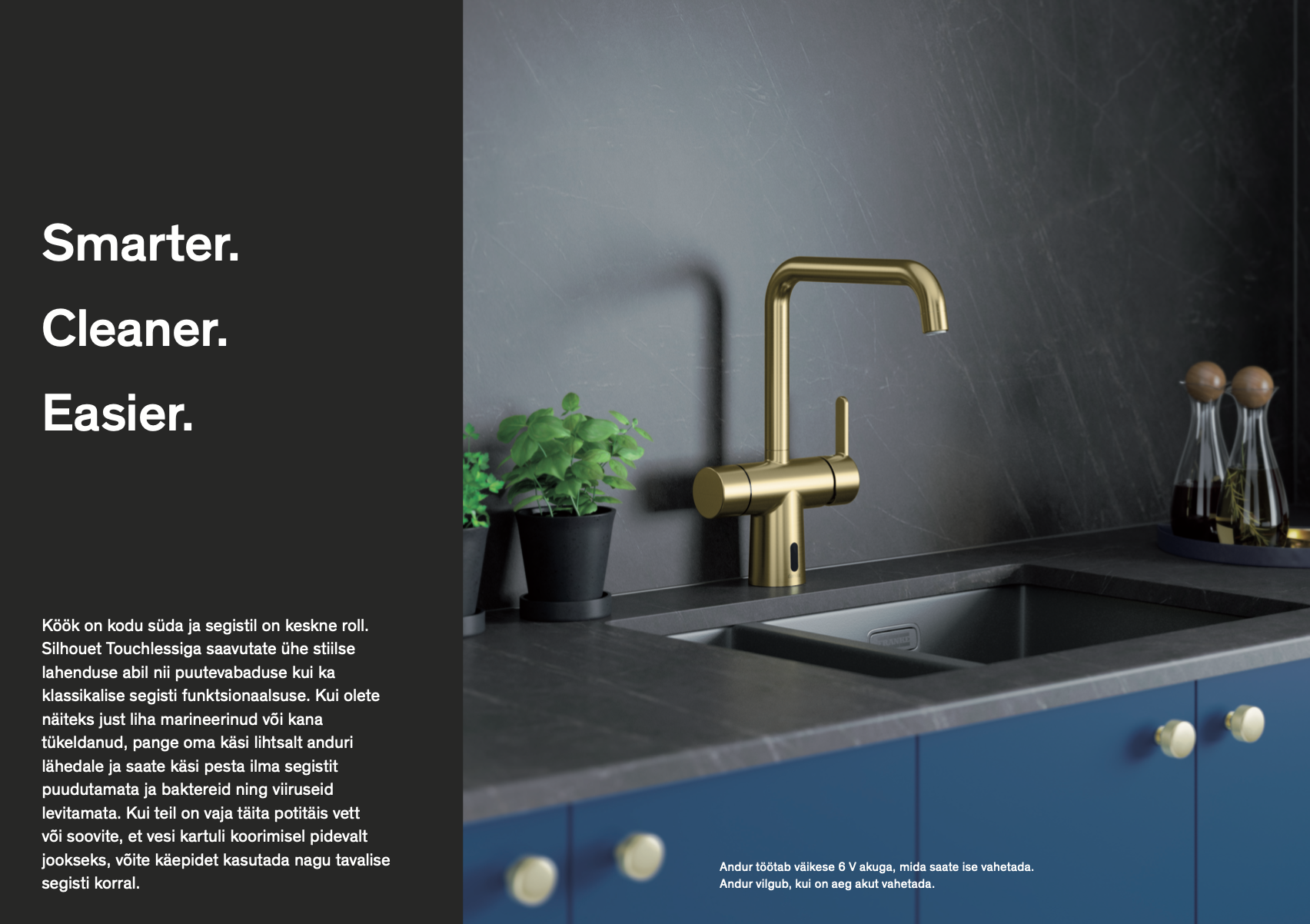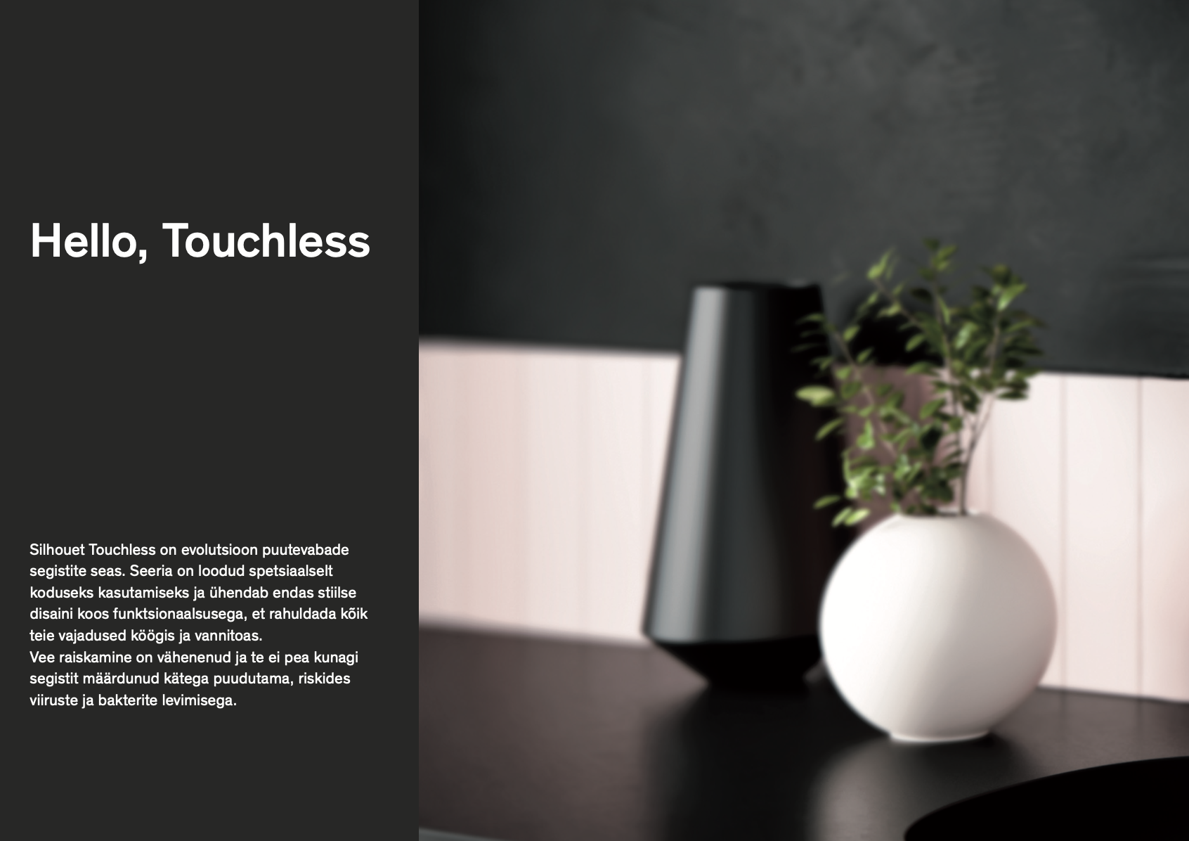 Silhouet Touchless on ajatu, lihtne põhjamaine disain, mis sobib hästi nii klassikalisse kui ka moodsasse koju. Vastupidav pind on saadaval kroomitud, harjatud messingist või mattmusta viimistlusega, nii et saate oma valiku abil rõhutada oma isiklikku stiili. Kujundus ja viimistlus sobivad loomulikult Silhoueti ülejäänud seeriaga.