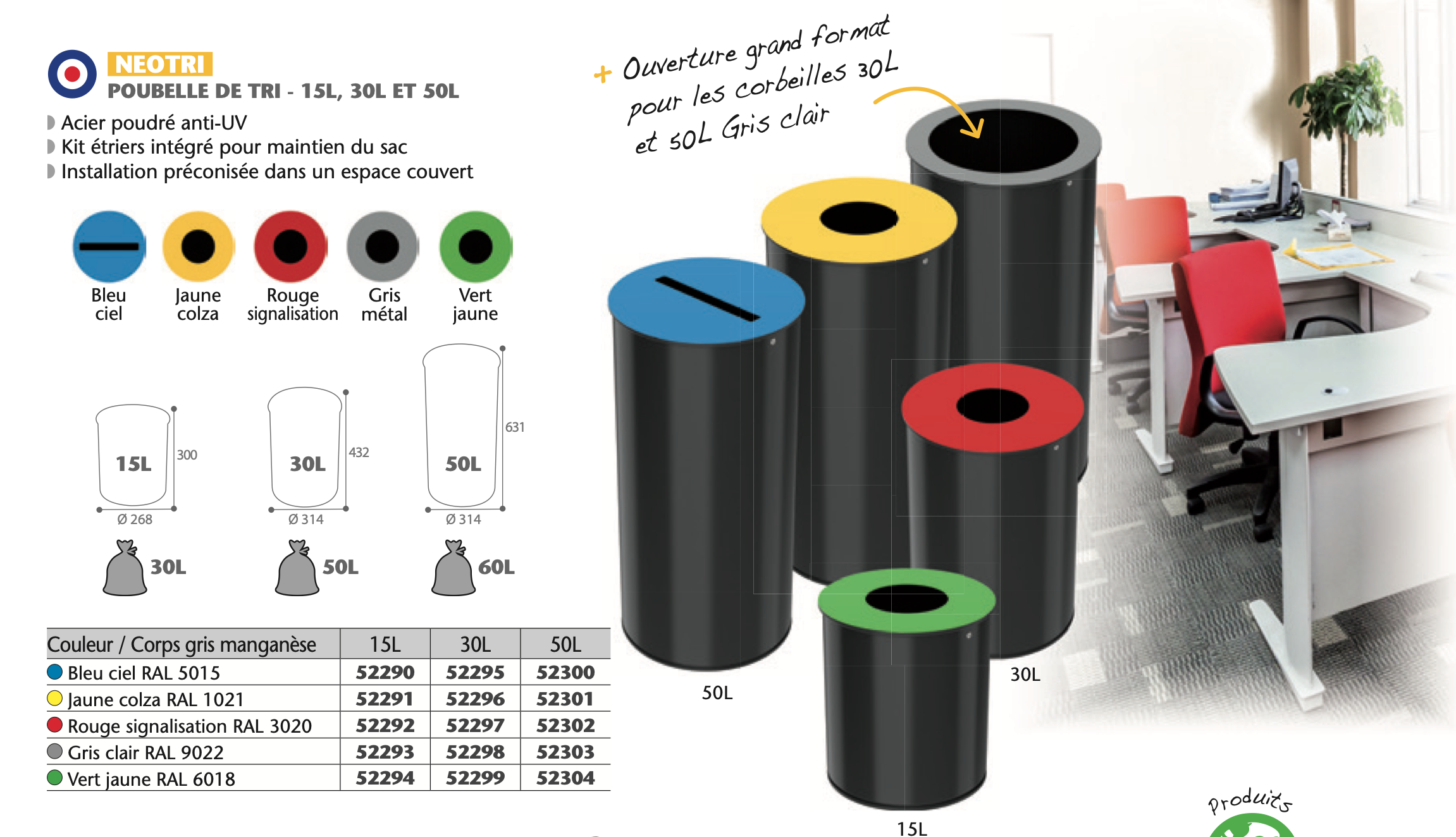 Сортировочные урны для конторы Rossignol NEOTRI. 15L, 30L ja 50L