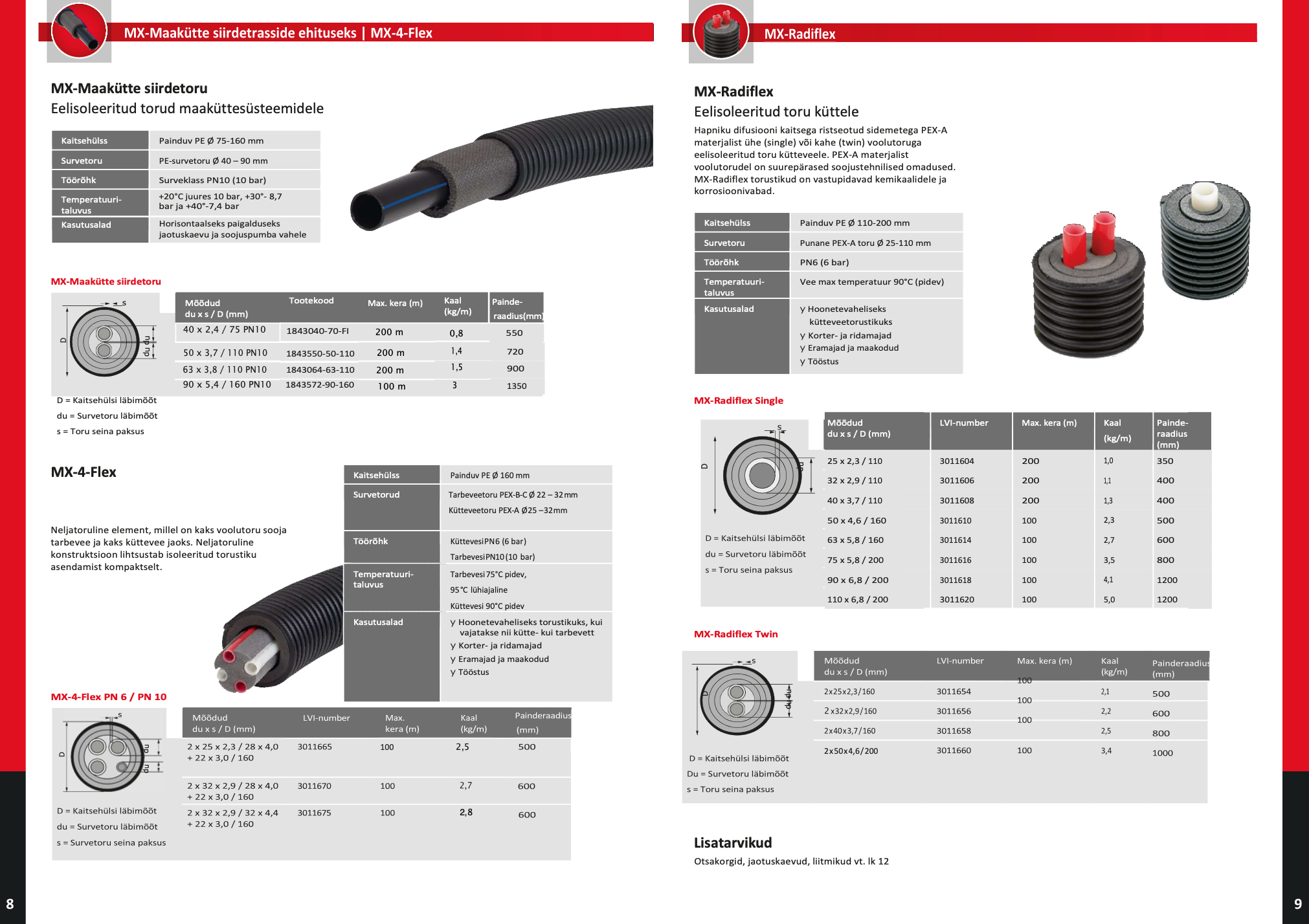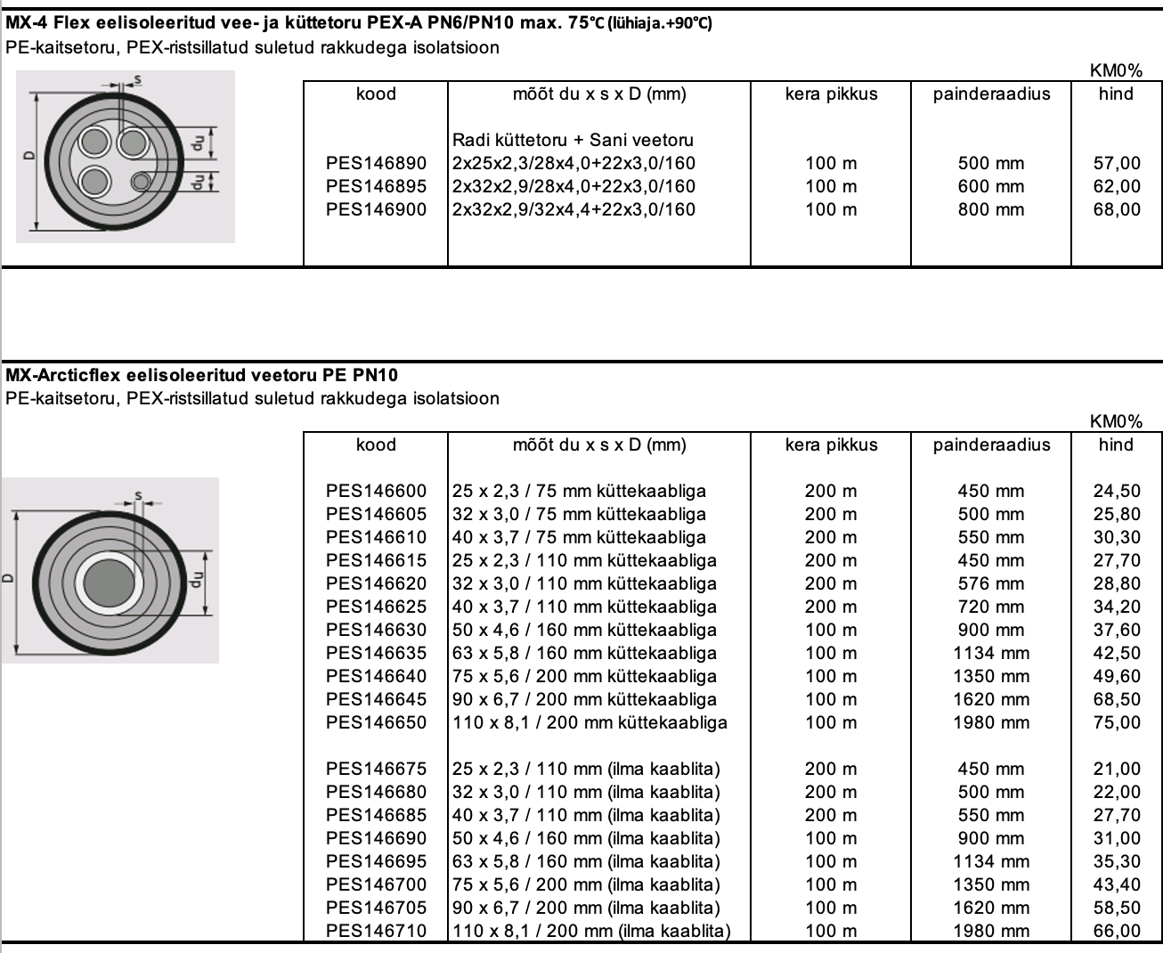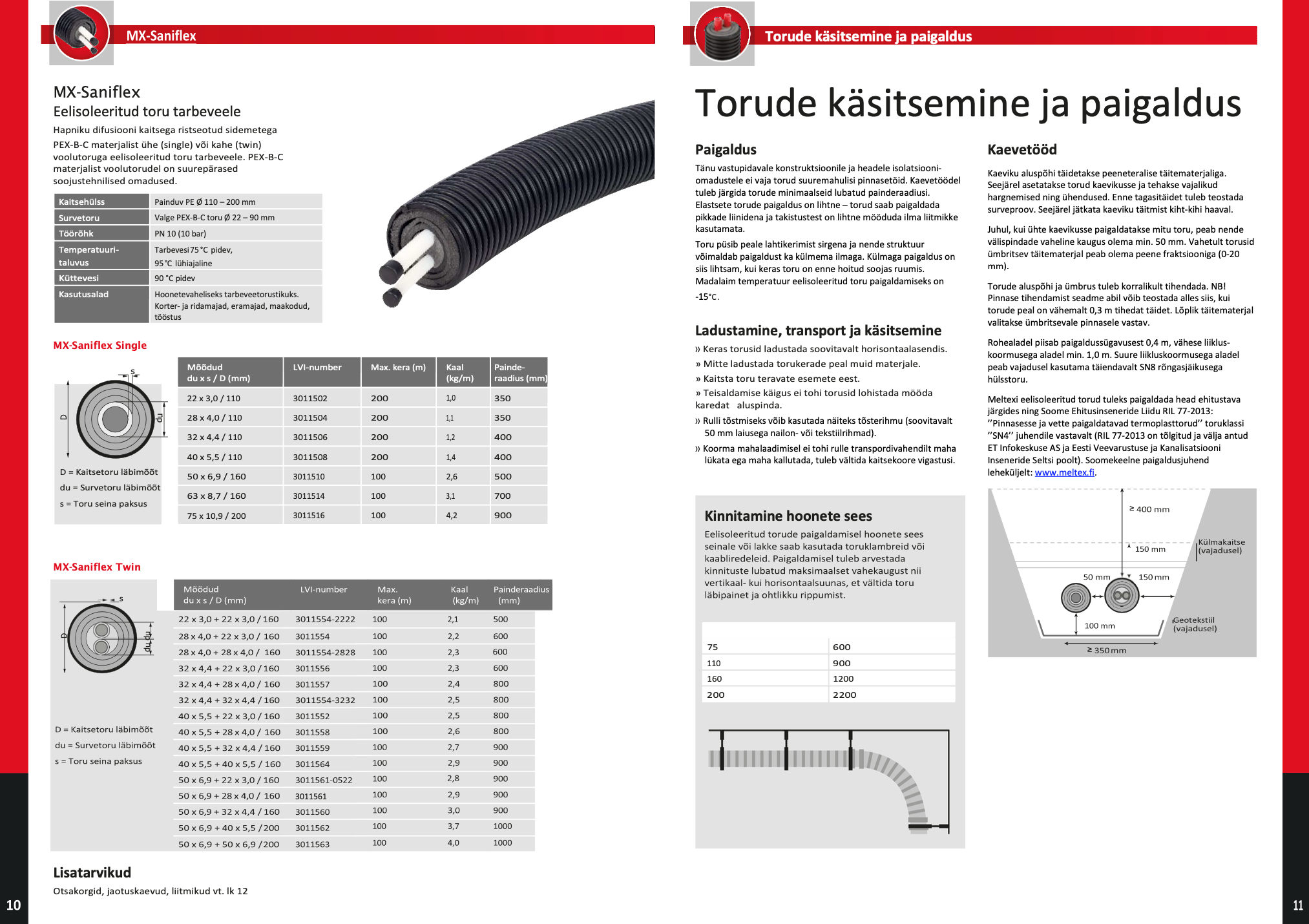 MX-Arctiflexi korrugatsiooniga polüetüleenist (PE) valmistatud kaitsetoru võimaldab suurt rõngasjäikust, kuid painduvat struktuuri. Eristusena toimiv ristiülekantud suletud rakkudega PEX-vahtmaterjal tagab torudele head soojusisolatsiooni näitajad (0,037 W/mk) ja painduva struktuuri. Toruna kasutatakse PE-survetoru PN10 rõhuklassiga.