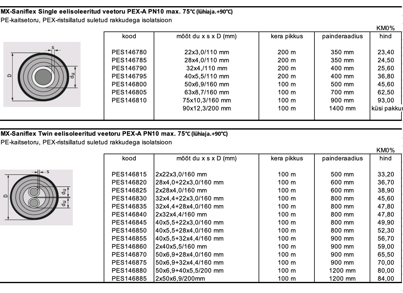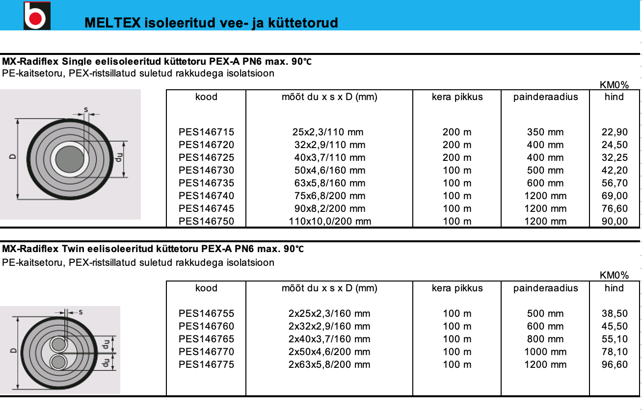 Märkus! Toru lõigatakse minimaalselt 1 meetri pikkuseks ning seejärel täpse meetri järgi! Te ei pea ostma terveid rulle!