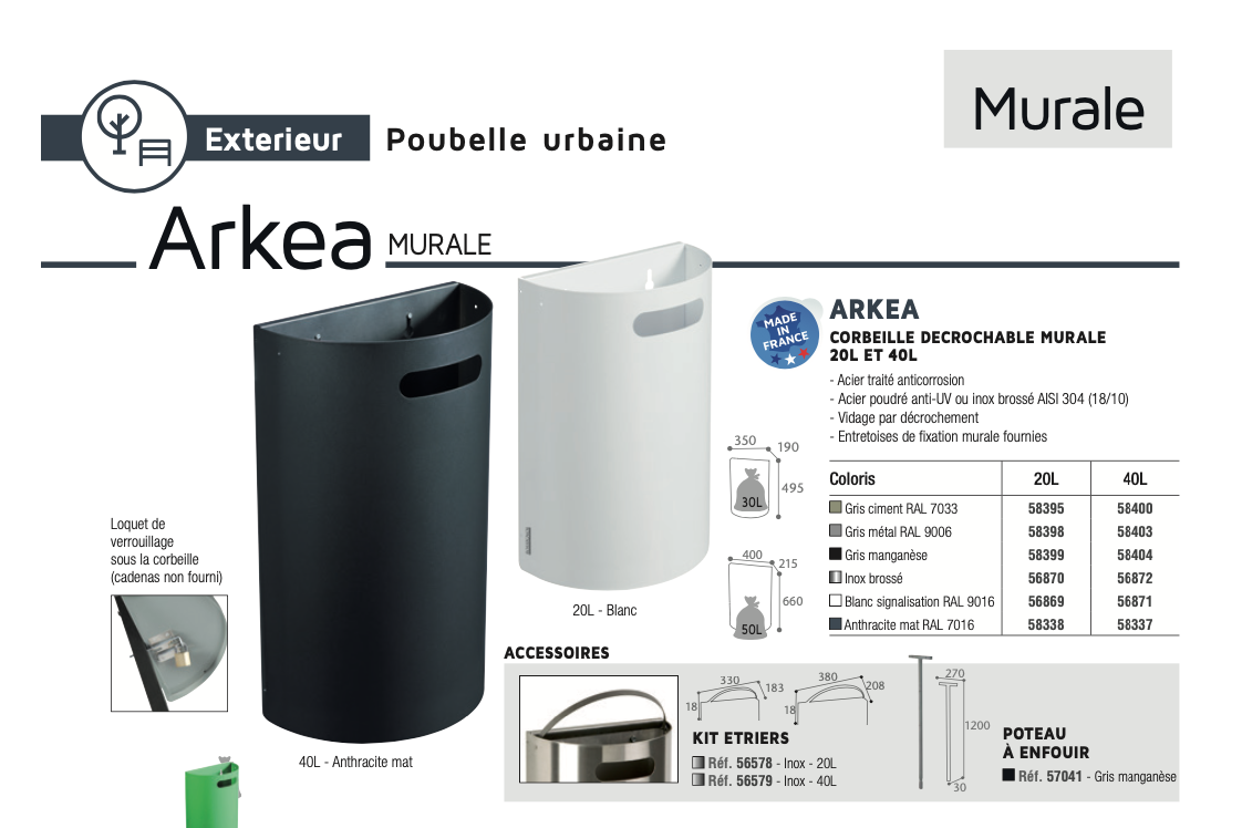Съёмные настенные уличные металличиские урны ARKEA