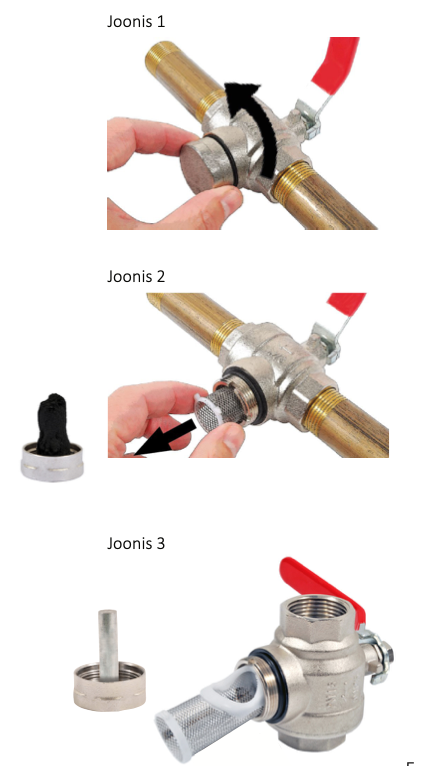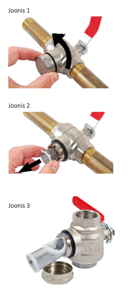 Pärast puhastamist panna tagasi sõel ja kork (joonis 3). Avada ventiil FBV.