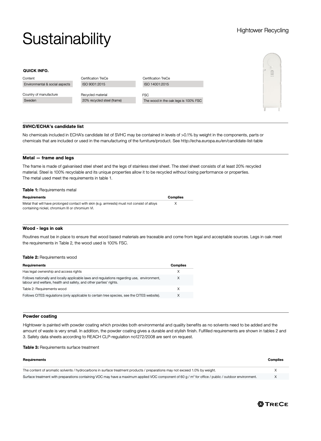 - Рама из порошкового покрытия оцинкованной стали производится в Швеции и состоит на 20% из переработанных материалов.