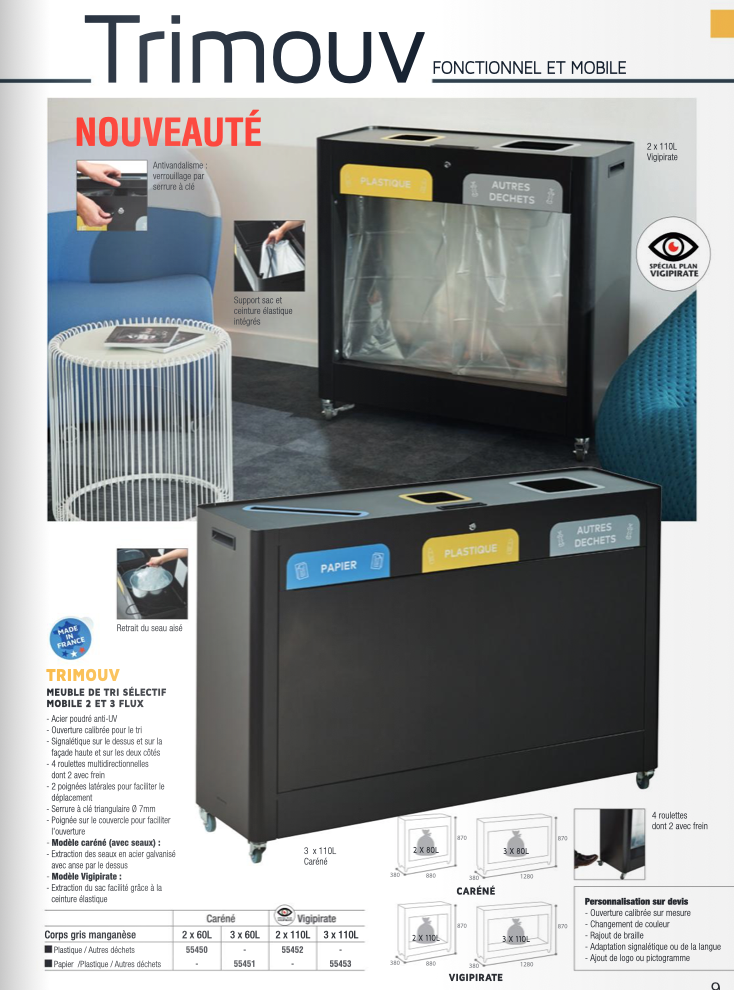 rash selective sorting vigipirate for public space Rossignol 3x110 L plastic and other waste, Trimouv.