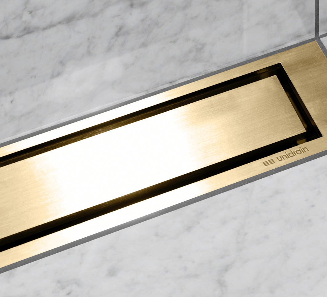 Unidrain Highline PANEL шлифованная латунь PVD – премиальные душевые трапы